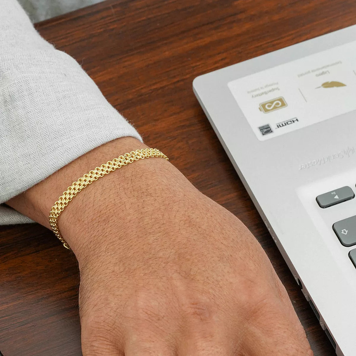 Fundimos Oro 18k sobre titanio, forjando un blindaje con el color, brillo y textura del Oro Italiano. Su durabilidad es aprobada en laboratorio, por esto, nuestra garantía es certificada.